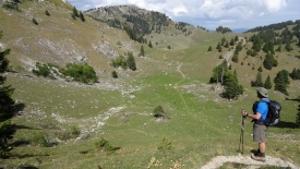 La descente est presque finie. Les genoux vont pouvoir souffler. Tout en haut, au centre gauche, la Pointe de Poêle Chaud.