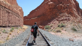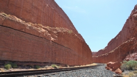 La voie ferrée. Taillée dans la pierre rouge. Quelques tonnes de roche ont dû être enlevées.