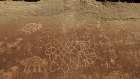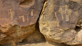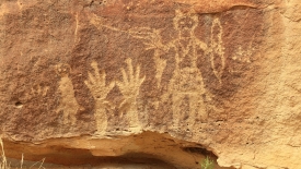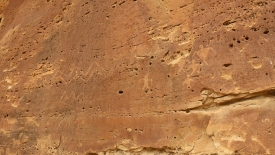 Nous trouvons quelques pétroglyphes, très abîmés.