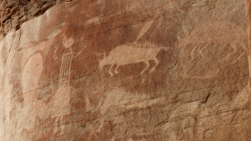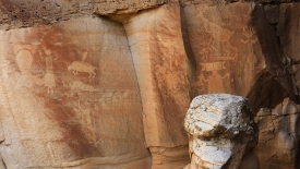 Des pétroglyphes à mi-hauteur de falaise, inaccessibles, témoignent du travail de l’érosion. Là où devaient se tenir les artistes, il n’y a plus qu’un grand trou.