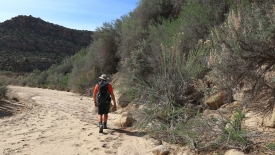 Nous marchons dans le wash et même si le sable est parfois meuble, notre rythme est plus rapide que si nous étions restés au pied des falaises.