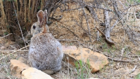 Tadam ! Voici Pinpin le lapin, pas farouche pour un sou, qui au lieu de fuir une bonne fois pour toute, se déplace du strict nécessaire pour garder une distance de sécurité (disons 2 mètres) entre lui et nous.