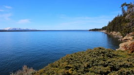 Aujourd’hui, c’est le billet de tous les superlatifs. Donc, encore plus sympa, nous allons longer une partie du lac de Yellowstone, cette même partie entre-aperçue hier sous un ciel chargé de nuages.
