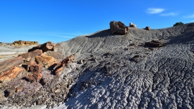Nous sommes dans une partie de De-Na-Zin où les troncs pétrifiés ont largement contribué à la définition du paysage.