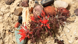 Encore des Desert Paintbrushes, entourées de pierres multicolores.