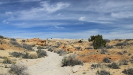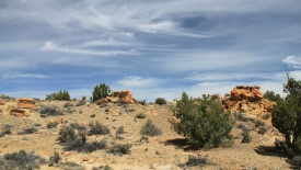 De-Na-Zin est située plus à l’est que Bisti, et pour nous y rendre, nous ne prenons pas la NM-371 comme à l’accoutumé. Depuis Farmington, nous empruntons la US-64 vers l’est puis, arrivés à Bloomfield, descendons au sud par la US-550 pour tourner ensuite sur la County Road 7500 direction ouest pendant moins de 20 km.