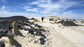 Les arbres pétrifiés emprisonnée durant des millions d’années dans cette roche noire sont comme calcinés.