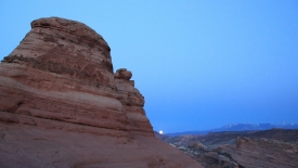 C’est la pleine lune ce soir, et nous allons profiter de notre séjour à Moab pour essayer de prendre Delicate Arch en photo avec la lune.