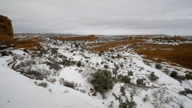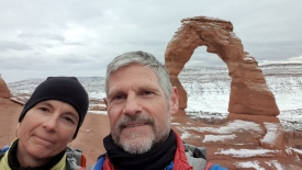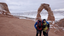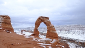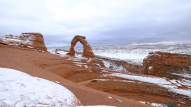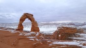 Nos vacances tirent à leur fin. Ce soir nous dormons à Grand Junction pour rentrer à Denver demain. Mais avant la déprime du départ, nous nous offrons un aller-retour sportif pour aller saluer Delicate Arch, magnifique dans la grisaille environnante, sur fond de sommets enneigés.