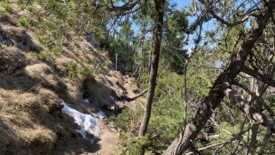 Ici, en 2021, le sentier était recouvert de neige.