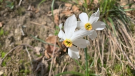 Et soudain, au détour du chemin, une fleur blanche attire mon attention. Des narcisses ! Nous sommes loin de la concentration observée dans la région des Pléïades mais leur présence ici m’enchante.
