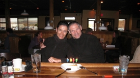 Petit steak à l’Outback de Grand Junction où nous nous offrons un cheese cake pour fêter nos 4 première semaines de vacances.