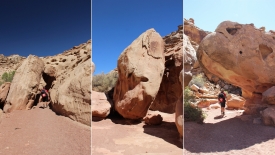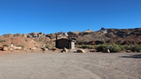 Le réveil sonne à 5h30 et la voiture est chargée à 6h. Après le petit dej’, départ en direction de Goblin Valley : US-191 puis UT-24, Temple Mountain Road, Goblin Valley Road et enfin Wild Horse Road.