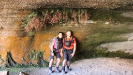 Un des coins de l’alcôve laisse suinter de l’eau. Des micro-organismes s’y sont installés et colorent la roche d’orange.