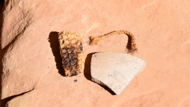 Ci-dessous, un bris de poterie, une rafle de maïs et ce fameux petit bout de cordelette.