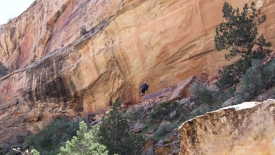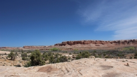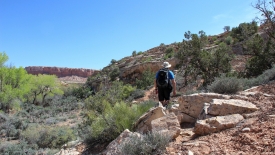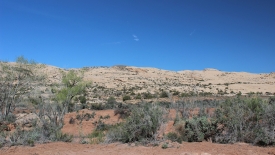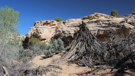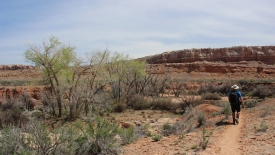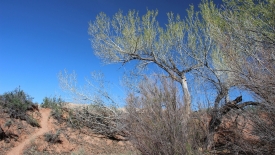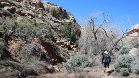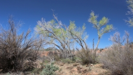 Nous devons traverser le Butler Wash, presque à sec mais dont le lit est envahi de tamaris. Une véritable plaie.