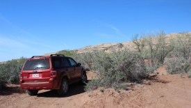 Nous reprenons la voiture après avoir quitté Wolfman Panel, et roulons un peu moins de 3 miles vers le nord, en direction de Double Stack Ruin.