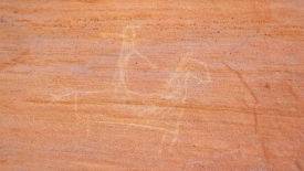 Et non loin, à peine visible, un pictogramme solitaire représentant un homme à cheval.