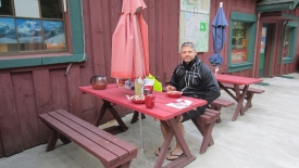 Nous nous posons quelques minutes, sur des cailloux, non loin de la Nisqually River.