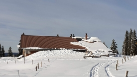 Le chalet du Pré d’Aubonne dans les dernières lueurs du soir.