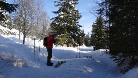 Notre intérêt pour le ski de randonnée nordique date du 24 décembre 2012, date à laquelle nous avions rencontré des randonneurs pratiquant cette discipline. C’était aux Monts de Bière Devant. Sortant du mur de neige montant jusqu’à l’avant-toit du chalet et terminant à peine une raclette, ils nous avaient demandé si nous « étions punis ». Devant nos sourcils levés en signe d’interrogation, ils avaient pointé nos raquettes, tout en chaussant leur skis.