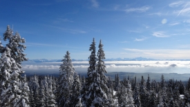 Ayant la flemme d’enlever nos skis, nous mangeons notre sandwich debout, en regardant le paysage.