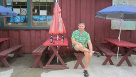 Nous terminons notre soirée sur la terrasse, en contemplant les voitures entrant et sortant du parc, tout en buvant une Blue Moon.
