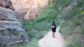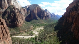 Pour notre dernière journée de vacances, nous nous offrons une escapade à Zion. Nous attrapons la navette du parc à la sortie de l’hôtel. Navette qui est déjà bien remplie, mais la moité des personnes descend à l’arrêt du départ du sentier de Angels Landing. Le départ du sentier vers Observation Point est visiblement moins prisé.