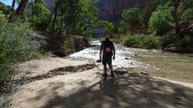 Le sentier goudronné met à rude épreuve nos petits petons. Stefano me montre la Virgin River et me dit : en arrivant en bas, nous irons tremper nos pieds. Chic !