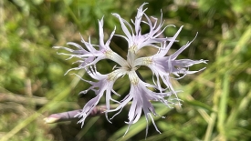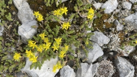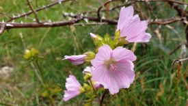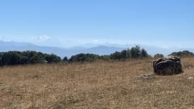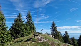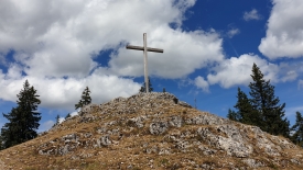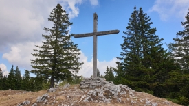 Le joli petit cytise du sommet, qui n’a pas fleuri cette année. Plus loin, la croix du mont Sâla.