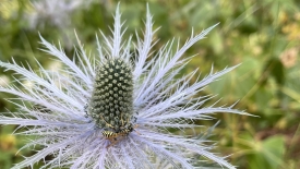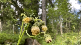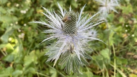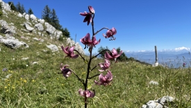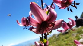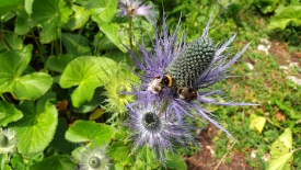 Stefano me propose de monter à la cabane du CAS pour redescendre ensuite sur l’Arzière. Il sait que la montée à la cabane n’est pas ma préférée. Etonnamment, malgré la chaleur, je ne me rends compte de rien. Et je suis récompensée par de jolis chardons bleus, très photogéniques.