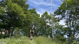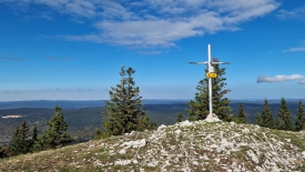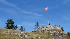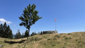 Nous attrapons le sentier qui monte vers le crêt de la Neuve où flotte un drapeau encore neuf.