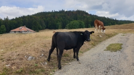 Un petit groupe de vaches pait près du couvert. Les bestioles nous regardent sans montrer un grand intérêt mais nous nous assurons néanmoins de rester à une distance respectable.