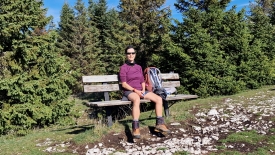 Nous suivons la crête en mode roller coaster pour arriver à La Glutte où nous trouvons une pierre bien plate pour nous asseoir (enfin moi) pour la pause déjeuner.