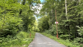 Arrivée sur la route gravillonnée qui vient du pré de l’Haut Dessus.