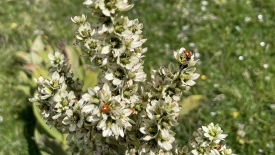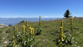 Le pâturage du Pré Nouveau a été bien tondu par le bétail. Il ne reste que quelques feuilles de gentiane jaune.