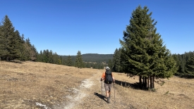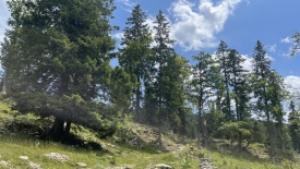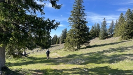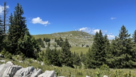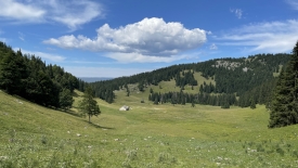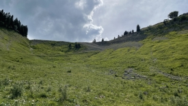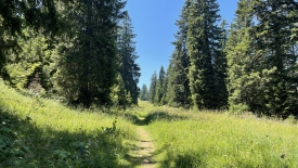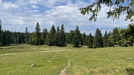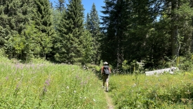Nous partons quelques instants plus tard, suivant d’abord un sentier, puis dans des pâturages boisés, en direction du Petit Cunay.