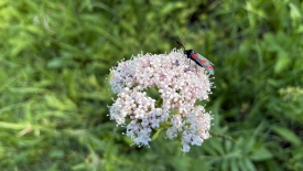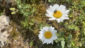 Stefano, super concentré, en train de photographier un tabac d’Espagne butinant une fleur.