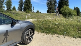 Le parking de la Bassine est plein et nous attendons patiemment que deux cyclistes, pas pressés pour un sou, clope au bec, termine de ranger leur vélo en papotant en suisse-allemand. Nous nous préparons en attendant, la voiture ostensiblement plantée au milieu.