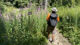 A l’abri d’un arbre, nous enfilons Gore-Tex, chapeaux et protégeons les sacs de la pluie. Le taux d’humidité doit être proche de 100% et nous nous remémorons quelques balades à Houston où, après avoir enfilé les ponchos, nous étions aussi trempés que sans, merci à la vapeur d’eau.