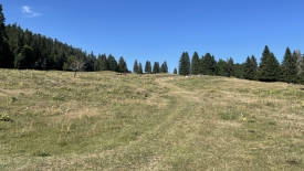 Nous longeons le cimetière aux Bourguignons et, une fois en vue du chalet du Croue, montons dans le pré, au nord, pour rejoindre par derrière le crêt des Danses.