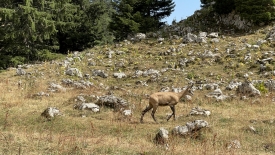 Nous partons vers Les Trois Suisses, espérant ne pas croiser de patou. Manque de bol, le troupeau de moutons est là et bien qu’il soit dans un enclos, un patou nous fait comprendre que nous ne sommes pas les bienvenus. D’autant que Stefano essaie de lui parler, ce qu’il n’est pas recommandé. De guerre lasse, il le contourne et me rejoint tandis que le chien continue d’aboyer.