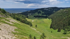 Près du ranch de la Pierre à Lièvre, nous rencontrons un randonneur solitaire. Parti tôt ce matin de Genève en transport public, il a démarré sa randonnée depuis La Cure. Son objectif, le Mont Tendre, avant de descendre vers Le Sentier pour attraper un bus ou un train pour revenir dans la cité de Jean Calvin. Object ambitieux de quelques 40 km. Nous marchons un moment avec lui avant que nos chemins ne divergent. Qui sait s’il a pu atteindre son but ? Mise à jour du 24 juillet 2023 – Nous recevons un email avec le sujet suivant : « Un grand merci d’un randonneur bien content ». Imran, c’est son nom, nous confirme ainsi qu’il a pu contempler la chaîne des Alpes depuis le sommet du Mont Tendre. Bravo !