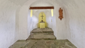 A l’intérieur, le même jaune vient souligner la croix et les fenêtres.
