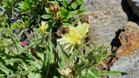 L’arrivée sur la crête est en cours d’aménagement. Des sculptures d’animaux en bois sont installées, ça et là. Il y a un chamois, assis et une grosse fourmi. D’autres sont éparpillées entres les arbres.