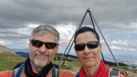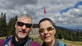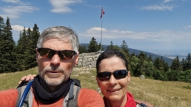 Au Mont Tendre. Nous sommes extra sérieux car très concentrés à avoir une prise de vue où l’on ne voit que nous. Mission accomplie. Il ne manque que le sourire.