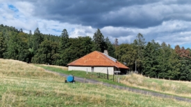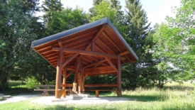 Toujours sur la route, nous arrivons à La Corne puis obliquons sur la gauche en direction de Druchaux. Nous cherchons maintenant un endroit pour le pique-nique. Le proche nous semble celui de la cabane des Rochers, en espérant qu’il n’y ait personne.