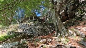 Nous partons ensuite sur le sentier qui fait le tour du Monte Abòrstora. A l’exception de quelques passages étroits, nous pouvons marcher de front et discuter ainsi de la visite de chantier que nous avons eu hier, à Airolo.