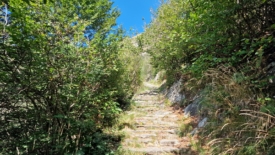 Lorsque le sentier devient plus raide, de la maçonnerie vient le renforcer.
