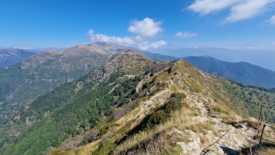 Après une courte halte, nous devisons, incertains, quant au temps qu’il nous faudrait pour redescendre par un autre sentier. Finalement, le choix se fait de suivre la crête jusqu’à Zottone pour ensuite engager la descente. C’est parfois aérien mais Stefano ne semble rien remarquer et reste absolument zen.